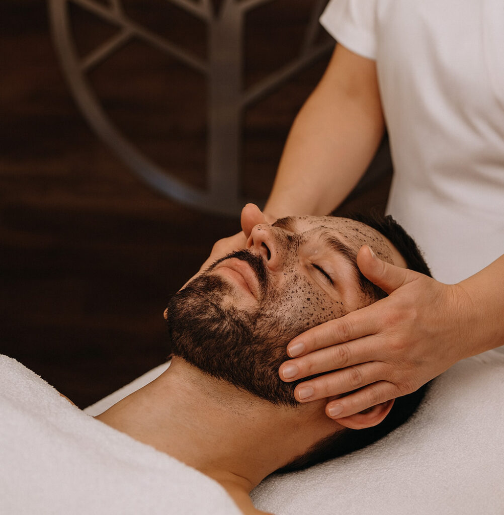 Relaksacyjny masaż twarzy, szyi i dekoltu z akupresurą głowy oparty na technikach drenażu limfatycznego, które redukują opuchnięcia i poprawiają mikrokrążenie. Masaż poprawia kontur twarzy, przywracając jej świeżość i lekkość. Całość wprowadza w stan głębokiego relaksu, rozluźnia napięcia mięśniowe i przynosi wyciszenie zarówno ciału, jak i umysłowi.